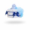 Tmavě modrý plenkový dortík pro chlapečky má průměr 18cm a obsahuje 20 kusů jednorázových plen Pampers new Baby-Dry 2, flanelovou osušku ze 100% bavlny s jednoduchým vzorem a botičky capáčky. Dortík je dozdobený organzou a všechny doplňky jsou sladěny do jednotného barevného tónu.